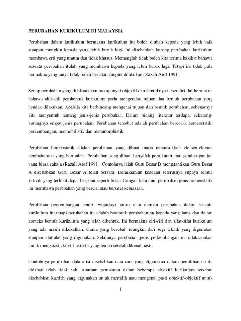 Faktor Faktor Yang Mempengaruhi Perubahan Kurikulum Di Negara Malaysia Pdf